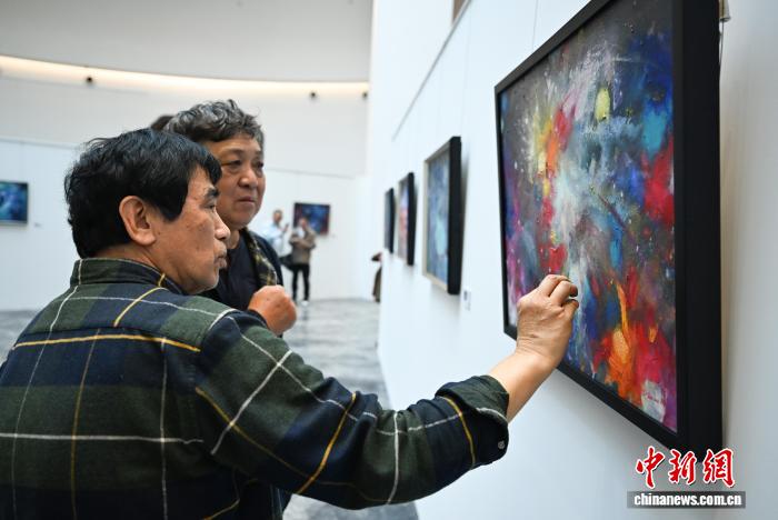 11月8日,缓叫绘做吸收观光者。当日,“千里报秋晖——奉籍城友缓叫/缓楠夫妻归城大作联铺”正在浙江宁波奉化启铺。添拿年夜奉籍华人缓叫,及妻缓楠的百余幅绘做散中明相,吸收公众观光。中新社记者 王刚刚 摄